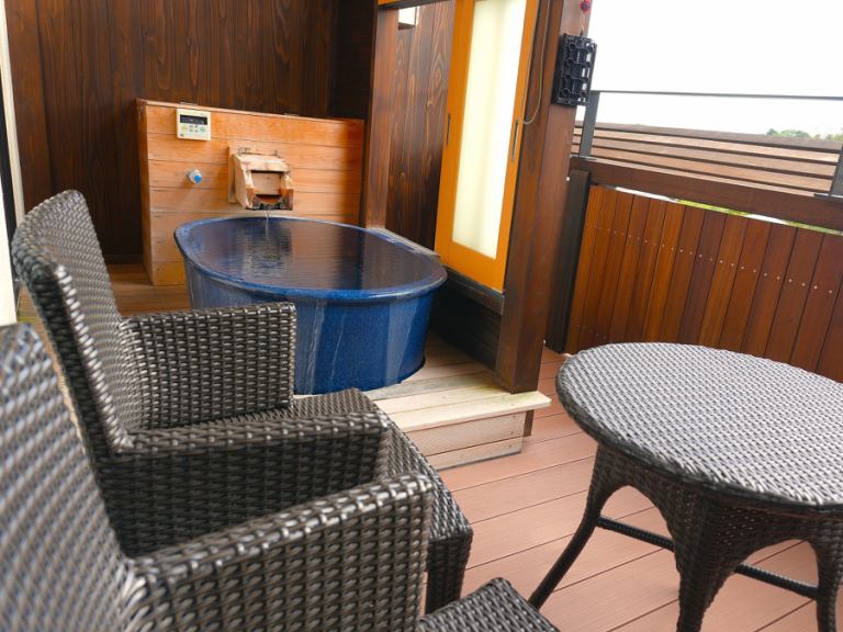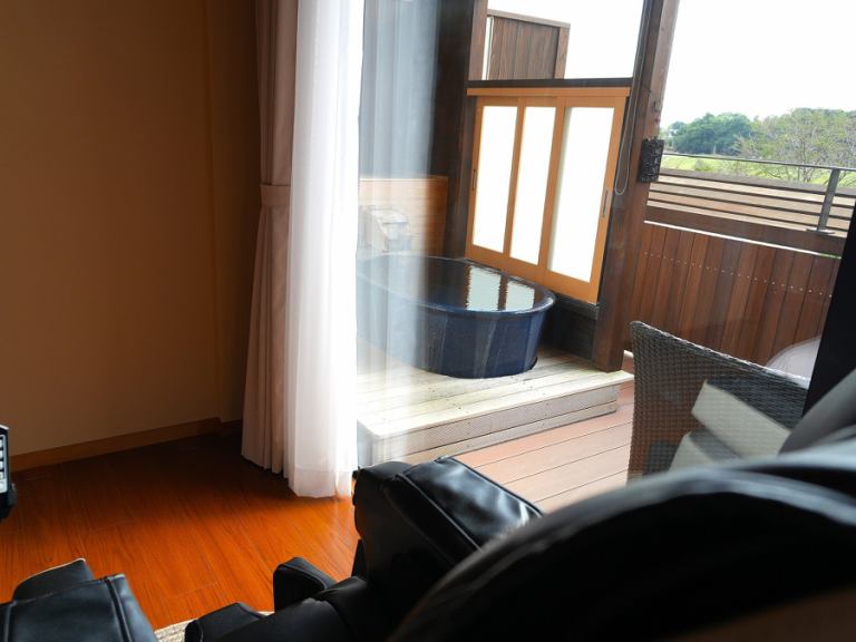 - 日西合璧的客房,配有陶瓷露天浴池和按摩椅